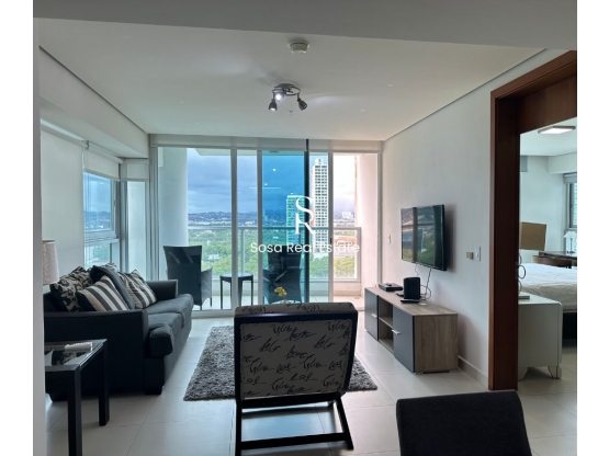 I am renting an apartment on La Rotonda Avenue, Costa del Este. Fully furnished. The apartment features one bedroom, 1.5 bathrooms, an integrated and fully equipped kitchen, living-dining room, balcony, one parking space, and an unobstructed view of the park.